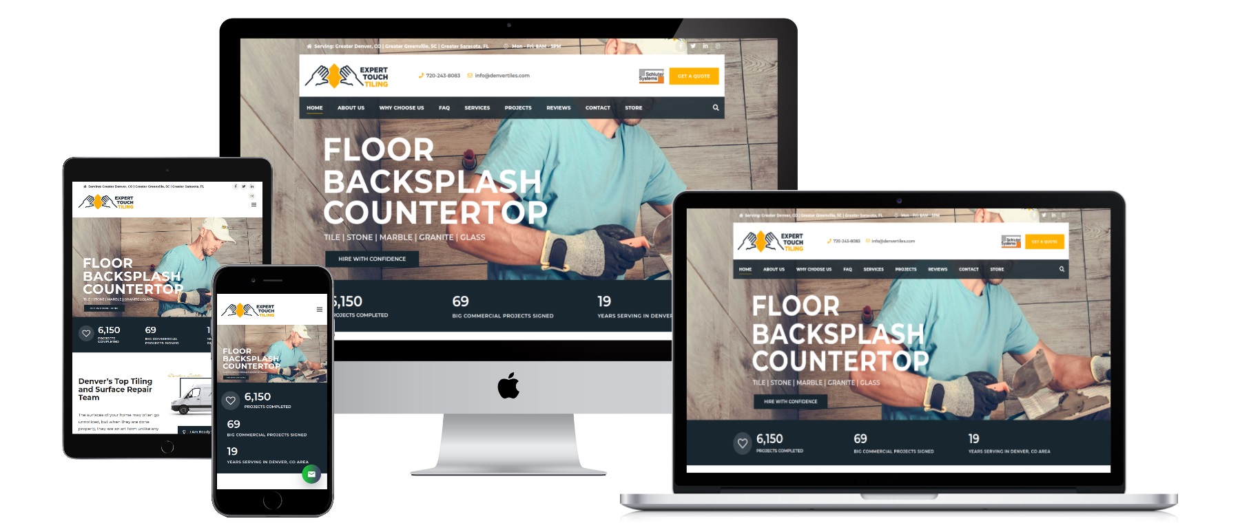 Expert Touch Tiling is a full-service tiling and surface repair company serving residential and commercial clients in areas including Denver, Greenville, and Sarasota. The website is built to showcase their wide array of services — from tile installation to repair and stone work — while helping visitors request quotes, view portfolios, and understand their processes.